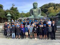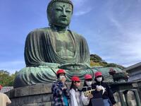 6年生の一行は、予定通り最初の目的地である高徳院に到着しました。鎌倉大仏とともにクラス写真を撮影しています。大仏の大きさを感じていた子供たちです。