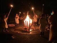 火の神から、火をいただき、点火。子供たちのテンションも一気にマックス。それぞれのクラスで考えたスタンツにダンスと大盛り上がりです。どの子も笑顔いっぱいに楽しむことができました。