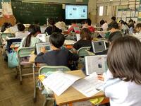 4年生「国語」の様子です。自分たちで調べた工芸品の魅力を、リーレフットで伝える、という学習をしています。「リーフレット」で伝えるためには、分かりやすい「見出し」「文章」、そのことをより伝わるような写真等を入れる、必要があります。どう表現するとよりよく伝わるかな、と考えながら作成していました。