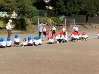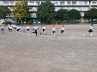 5年生、体育の様子です。タグラグビーの説明を聞いた後、ベルトにタグを付けて、タグ取りが始まりました。相手のタグを取ると「タグー」と声を出して知らせます。