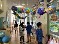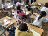 3年生、図画工作の様子です。アートウィークで校内に展示されている各学年の作品を鑑賞していました。「すごーい」「これ、上手!」「きれい」等々、他学年の作品から刺激を受けているようでした。