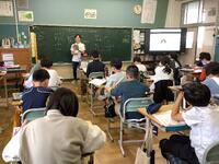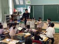 3年生「総合」の様子です。本日は、三島商工会議所青年部の方を講師に、三嶋柄についての学習です。沼津市を拠点にしているお笑い芸人の「さこりっち」さんも講師に来てくれました。子供たちとゲームをしながら関係をつくり、三嶋柄について教えてくれています。