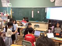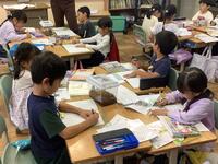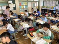 4年生「社会」の様子です。伝統を守るために、地域の人はどのような工夫をしているか、また地域の人々はどんな願いをもっているのかを調べ、まとめていました。いろいろ調べていくと、中心となった人が出てきます。こういった共通点を見つけていくことも社会の学びです。