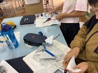 4年生理科で水ロケットの改造をしました。前時の発射を反省にもっと飛ぶための翼などをつけました。