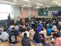3年生が、アスルクラロ沼津の陸上のコーチを講師に迎えた「全力教室」の陸上の走り方の指導を受けました。動きをよく見ること、自分からチャレンジしてほしいこと、そして、全力教室を楽しんでほしいことを最初に子供たちへ伝えられました。