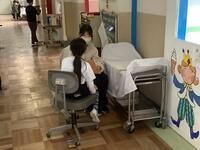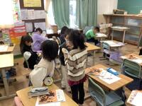旭ヶ丘幼稚園・加茂保育園の年長さんが山田小学校の見学に来校しました。1年生の授業の様子を見学したり、小学校の施設の様子を見て回ったりしています。給食の様子も見学しました。