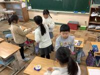 2年生「算数」の様子です。時間と時こくのまとめの学習を行っていました。時間を使ってのじゃんけんゲームを行っていました。9時をスタートにして、パーでかったら30分、チョキでかったら20分、グーでかったら10分ずつ進め、先に11時になったら勝ち、というゲームです。こういったゲームをしながら時間と時刻について習熟を深めていきます。子供にとっては難しい時間と時こくでが、このように楽しみながら学習を深めていきます。
