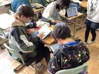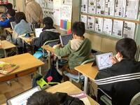 4年生の総合的な学習の時間の授業の様子です。4年生は、安全・安心をテーマに掲げて、福祉や災害、交通安全等の学習に取り組んでいました。このたび、調べてきたことを1人1台端末の学習アプリにまとめ、グループごとに発表する機会をもちます。