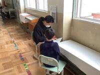 子供相談では、各学級で行った生活アンケートの回答を元に話をしていきます。学校生活の中で気になっている、学習のこと、友達こと等を相談する子もいれば、最近がんばっていることや楽しんでいることを話す子もいます。次の学年に向けて取り組みたいことも話し合っています。