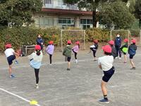 子供たちは、とても楽しそうにペアでボールをけり合っていました。ねらいがバッチリ決まり相手の足もとにけることができたり、けり損なってはずれたの場所にとんでいったりすることもありましたが、互いに声を掛け合ってボールけりに取り組んでいる姿がとてもいいものでした。