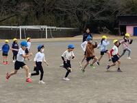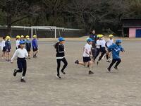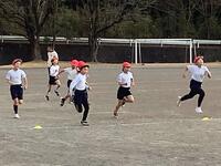 身体ほぐしの体操の後、走る際に気を付けたいポイントを踏まえた走り方を学んでいきます。腕を振ること、弾むように足を上げていくこと、姿勢をよくすることなどです。