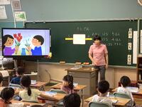 朝の時間に本読み隊の皆さんが1年生を対象に読み聞かせをしてくださいました。本のタイトルは「ともだちや」です。大きな絵本をつかって、子供たちにも絵が見えやすいようにしてくれています。