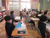 2年生図工の授業の様子です。今日からカッターを使うので、けがをしないように、けがをさせないように、約束をしっかりと確認しています。刃の出し方や手の置き方はもちろんのこと、授業中は出歩かないこと、しゃべらないこともとても大事なことが分かりました。みんなで約束を守っていい作品を作っていきましょう。