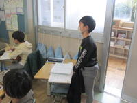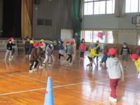 今日から1年3組の内野咲野先生に代わって勤務する大村佳代先生の紹介を学年集会で行いました。3月までの短い期間ですが、よろしくお願いします。その後は、学級混合でのドッジボールで楽しみました。