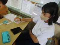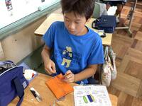 5年生の家庭科の授業の様子です。様々な縫い方を学習した子供たちは、その縫い方を使って、ポケットテッシュカバーづくりに取り組んでいました。なみ縫い、半返し縫い、本返し縫いを強度が求められる部分によって、縫い分けていきます。子供たちは集中して取り組んでいました。すてきなカバーが仕上がってきています。