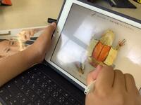 5年生理科で有料アプリFroggipediaを使ってカエルの発生や体のつくりをAR「拡張現実」で疑似体験しました。