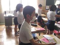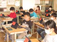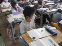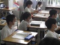 4年生国語の授業の様子です。空書きで書き順を確認してから、漢字書き取りの練習をしています。マスいっぱいに丁寧に書けています。