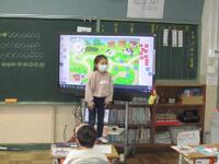 4年生理科の授業の様子です。「昆虫が春になると動き出すのはどうしてか」について、手掛かりとなる富士山の変化や人の服装の変化から予想立てをしています。共通点は気温の変化によるものと多くの子が予想しています。