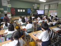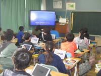 6年生理科の授業の様子です。南太平洋に位置する小さな島国ツバルの国土が浸食されていく動画を視聴しました。環境問題の中でも地球温暖化について考えています。
