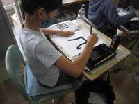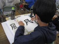 6年生書写の授業の様子です。書く前に先生からは、細かな筆使いによって書道の味が出たり、美しく見えたりすると教わりました。手本を見ながら細かいところに注意して練習していました。