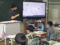 3年生外国語活動の様子です。国旗を見て国名を答えていきます。国名を英語で答えるのは難しいですが、ALTの先生の発音を聞いて、しっかりと覚えて発音することができました。