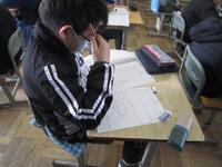 今日は全国一斉に行われている学力学習状況調査(小学校6年生と中学3年生)です。今年度は国語、算数、理科の3教科と質問紙調査です。みんな問題をじっくり読み、集中して取り組んでいました。