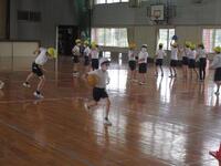 3年生体育の授業の様子です。チームになってボールを頭上や股の下を通して競う、順送球(メディシンボール)を行いました。ボール操作と走力、そしてチームワークが求められる競技です。