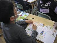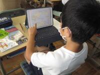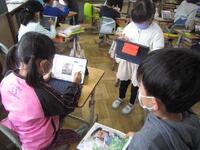 3年生理科の授業の様子です。画像に撮った見付けた生き物を分類ごとにまとめています。植物を色別にしたり、鳥などの生き物もワークシートに載せたりしていました。