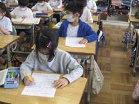 4年生国語の授業の様子です。国語辞典を使って意味調べをしています。辞書を引いて内容や意味を理解した上で、プリントにまとめています。