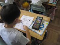2年生算数の授業の様子です。力を付ける問題に挑戦中です。絵を見ながら種類ごとに数を数えながらグラフを作成しています。