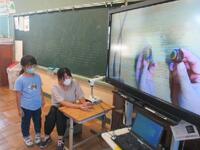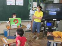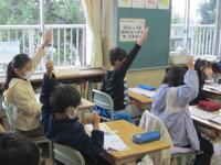 1年生の生活では、校地内で見付けたどんぐりや、松ぼっくり、銀杏の葉っぱなどをみんなの前で紹介しています。目をキラキラさせて電子黒板に注目していました。たくさんの秋に触れることができました。