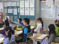 4年生国語の授業の様子です。通学路の危険箇所を調べ、地図に書き込んだものを提示しながら、みんなに伝えています。調べたことをいかに聞いている人に分かりやすく説明したり、伝えたりすることの難しさを感じたようです。