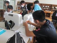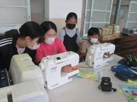 6年生家庭科の授業の様子です。修学旅行に持っていくナップサックをミシンで製作しています。今日はひもを通す出し入れ口を輪になるように縫っています。ミシンの使い方に慣れている6年生は仕上がりも完璧なようです。