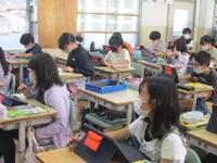4年生国語の授業では漢字の筆順について個々で学習を進めています。筆順辞典のアプリを使いながら、それぞれの手法で何回も繰り返し書くことで、確実に筆順を覚えています。