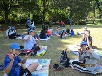今日は秋らしい爽やかな晴天です。明るく広々とした芝生広場で食べるお弁当は、とてもおいしかったようです。木陰では気持ちのよい風が吹き、食べ終わった子供たちは元気に外遊びを楽しんでいました。