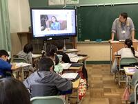 5年生の外国語の授業の様子です。誕生日や欲しいものを話している映像を見ながら、なんと言ったかを聞き取る練習をしています。聞き取った内容をプリントに書き込み、みんなで確認していました。