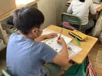 5年生が「社会を明るくする運動」のポスター制作に取り組んでいます。自分のメッセージを伝えるためのデザインや色をよく考え、丁寧に作業を進めています。作品はコンクールに応募するので、結果を楽しみにはりきって制作しています。