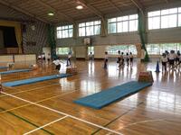 2年生、体育の様子です。跳び箱運動を行っていました。いきなり跳ぶのではなく、跳び箱の上から両足で着地する練習から始まりました。どうしたら格好良く着地のポーズが決まるのか、試行錯誤しながら何度も挑戦していました。