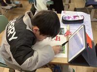3年生の図工の様子です。今日から「マグネットマジック」の制作に入りました。磁石の力を利用し、こまの動きを考えながらオリジナルのゲームを作ります。「魚が海の中を冒険するゲームにしよう。」「UFOキャッチャーのように、持ち上げて運ぶゲームがいいな。」「迷路を作って進んでいく形にしよう。」子供たちからは、次々ユニークなアイディアが生まれます。発想豊かな3年生の作品、どんな風にできあがるのか楽しみです。