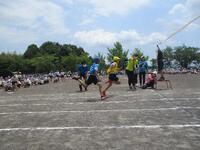 高学年児童の本気の個走は、迫力があります。応援席の前を駆け抜けていく姿に、低学年児童からは、「赤組頑張って!」「すごいよ!青組!」「速すぎる!」など、応援の言葉がかかります。憧れの高学年ですね。