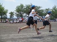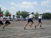 4年生は、「思いをつなげ!やる気MAX学級対抗リレー」の言葉通り、バトンに思いをのせて力走しました。レースは最後の最後、アンカーが走り終わるまで、結果がどうなるのかハラハラドキドキする展開となりました。全力を出し切り満足している子供たちです。