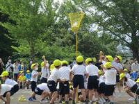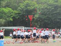 1年生の団体競技は玉入れです。「チェッコリ」の曲に合わせ、かわいい振り付けでダンスを披露した後、笛の合図で玉入れを開始します。踊って投げてを繰り返し、入った玉の数は・・・・。びっくりの記録更新でした。