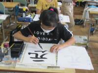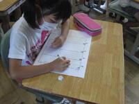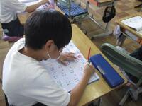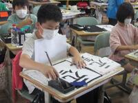 4年生書写の授業の様子です。「元気」という字を清書しています。「曲がり」と「反り」を意識して書いているのがよく分かります。姿勢よく集中して書けていました。