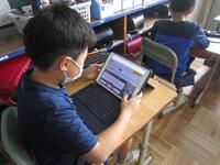 4年生算数の授業の様子です。大きな数の単元のまとめとして、eライブラリで数多くの問題に各自で挑戦しています。自分のペースでできるのがいいですね。
