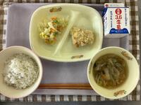 ☆麦入りご飯☆牛乳☆鶏肉のパン粉焼き☆キャベツソテー☆白菜スープ