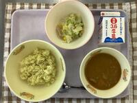 ☆カレーピラフ☆牛乳☆スイートポテトサラダ☆ミネストローネスープ☆チーズ