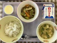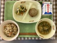 ☆五目炊き込みご飯☆牛乳☆やきつくね☆煮浸し☆味噌汁
