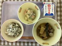 ☆麦入りご飯☆牛乳☆がんもの煮付け☆ツナとキャベツのごま和え