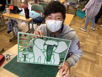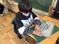 6年生の図画工作の授業の様子です。切り絵に取り組んでいます。子供たちがそれぞれデザインした絵柄をていねいにカッターで切り抜いていきます。6年生になるとカッターの扱い方も上手です。この後、この切り抜いた枠紙にカラーのセロファン紙を貼り付けて、ステンドグラス風に仕上げていく予定です。