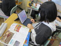 社会科では、明治時代の自由民権運動から国会が開かれるようになった頃の歴史について学んでいます。修学旅行で国会議事堂を見学し、体験プログラムも経験した子供たちは、当時の政治の仕組みと現代とを比べながら、興味深く学習しています。特に当時と現代の有権者の違いや投票率の違いには、驚いていました。授業の終盤には、キーワードを使って自分の言葉で学習内容をまとめています。つなげて考えることで、理解を深めています。
